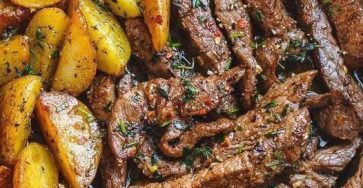 GARLIC BUTTER STEAK AND POTATOES SKILLET Easy Garlic Butter Steak and Potatoes Skillet with juicy seared steak and crispy roasted…